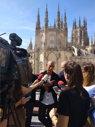 2011 . PREGONERO DE LAS FIESTAS MAYORES DE BURGOS.El entonces Alcalde de Burgos Juan Carlos Aparicio le propone como pregonero de las Fiestas de San Pedro (Fiestas mayores de Burgos). Redacta un pregón basado en las sensaciones de su niñez junto a un imaginario viaje con las estrofas del Himno a Burgos. Enlace