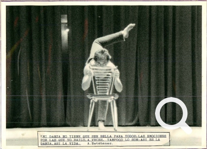 2.- Las primeras coreografías, yo tenía que bailar casi todo, esta se llamaba “Nublos”, me acompaña Marta Terán, de las primeras alumnas. Aunque fuera reconocían mi talento, en Burgos, las coreografías no gustaban nada y la crítica me decía cosas horribles. Estaba claro que Burgos era de Folklore, y yo tenía que cambiar eso. Bueno, aparecer semidesnudo no ayudaba …