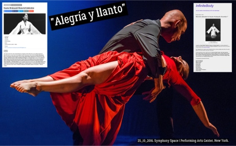 Me llamaron para participar en el grandioso homenaje que mas de 700 profesionales de todo el mundo le dedicaban a “Kaz”, ¿que si quería estar presente y bailar para Kaz?. Por supuesto y así el 25 de Octubre de 2016, Sara y yo bailamos en ese homenaje “Se nos rompió el amor” yo con 56 años, saqué fuerzas del orgullo y en el Theatre Symphony Space 2537 Broadway, New York, se hizo un silencio al acabar la pieza, Sara y yo estiramos los brazos hacia el cielo y dijimos “Gracias Kaz”. Fue emocionante estar al lado de las grandes figuras universales de la Danza, todos nos conocían. En el video de arriba tenéis el video completo. Sara y yo aparecemos en el 1:06:54.