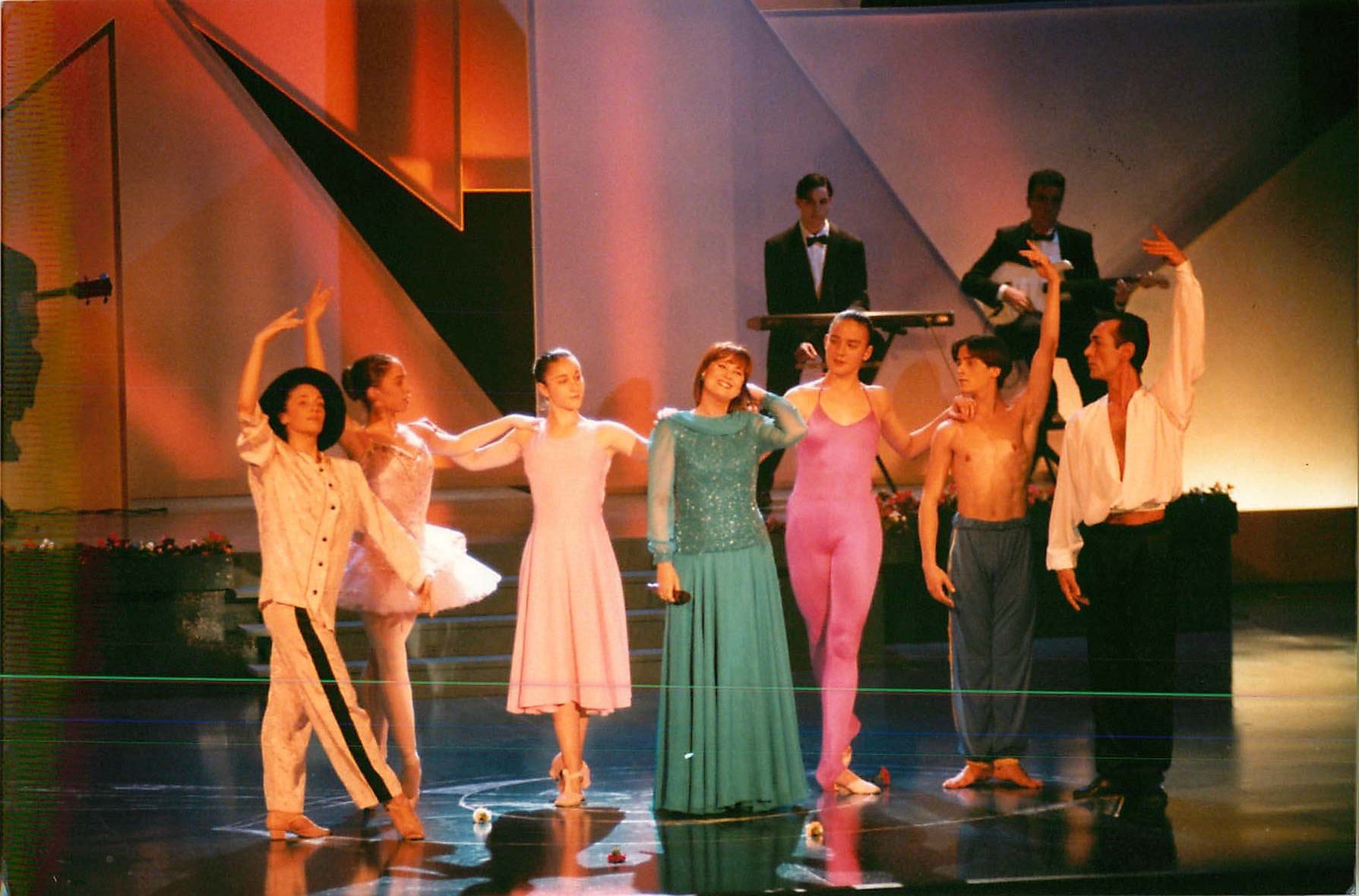 7.- En 1995 Teresa Rabal decide contratame como coreógrafo de su famoso programa Veo, Veo. Trabajé a su lado 10 años, recorrí España e hice varias ediciones del programa internacionales. Teresa me acogió como un hijo, éramos una tándem bien compenetrado. Hice muchas coreografías para el programa Veo, Veo y decenas de mis alumnos fueron protagonistas del programa. Decirla adiós fue duro, pero conservamos una buenísima amistad. En la Noche Vieja de 1997, en TVE, realicé “GLORIA” con alumnos de Hélade y del Conservatorio de Danza de Madrid. Quedó genial. Gloria formaba parte del Musical “Enmanuelle” que produjo Teresa y Eduardo (su marido) entre 1996 y 97, y del que fui su coreógrafo. Por cierto en este especial de Noche de Vieja de T.V.E estaba de presentadora Norma Duval, por Dios que mujer tan bella!!!
